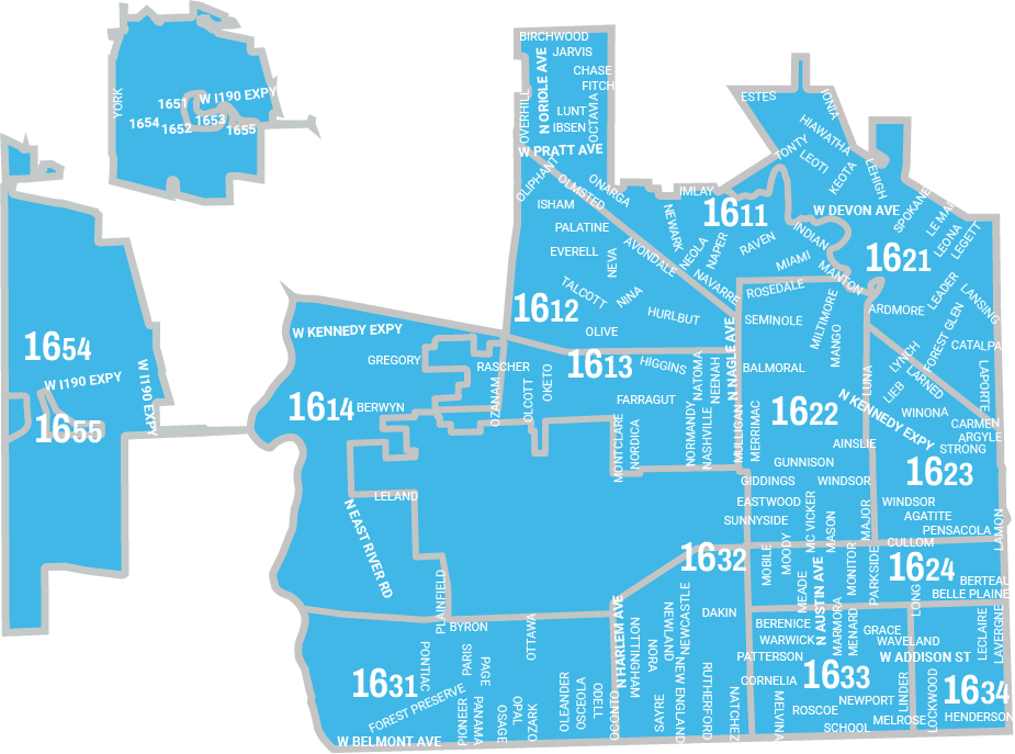 Neighborhoods in the 12th District Council include: O’Hare, Portage Park, Jefferson Park, Sauganash, Forest Glen, North Park, Albany Park, Irving Park, Dunning, Norwood Park, Edison Park, Montclare, and Belmont Craigin.