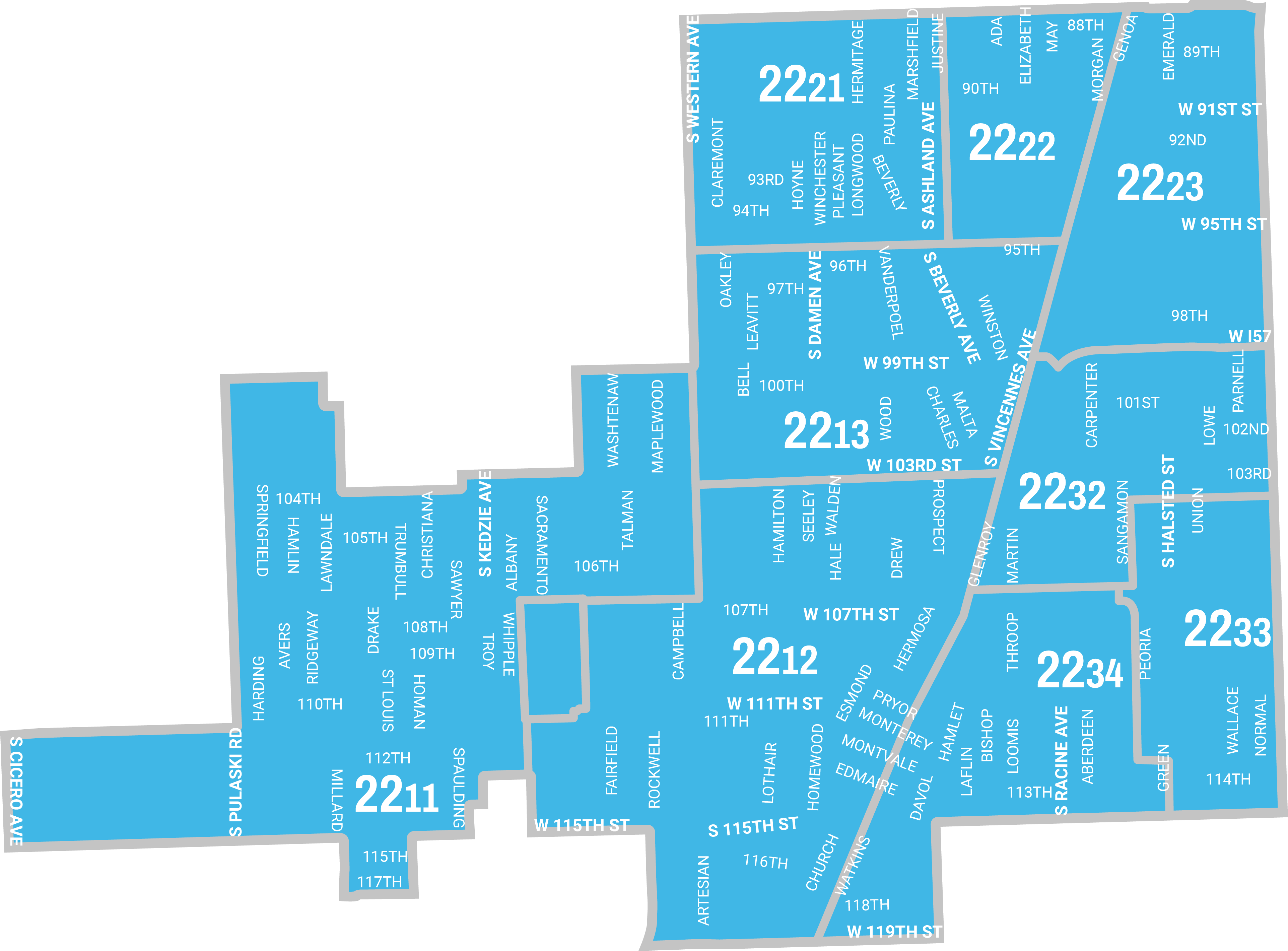 Neighborhoods in the 22nd District Council include: West Pullman, Mount Greenwood, Morgan Park, Roseland, Auburn Gresham, Beverly, and Washington Heights.